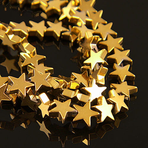 Ciemno złote gwiazdki z hematytu – metaliczne przekładki z kosmicznym motywem