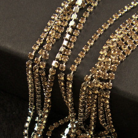 Taśma metalowa ciemna srebrna 2mm z cyrkoniami jasno złotymi (20cm)