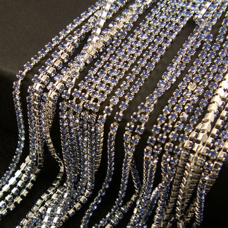 Taśma metalowa srebrna 2mm z cyrkoniami jasno szafirowe (20cm)