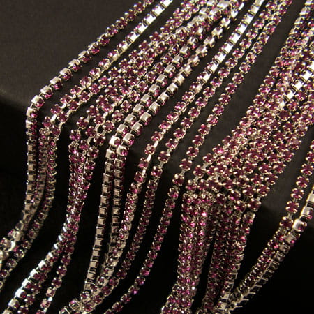 Taśma metalowa srebrna 2mm z cyrkoniami różowymi (20cm)