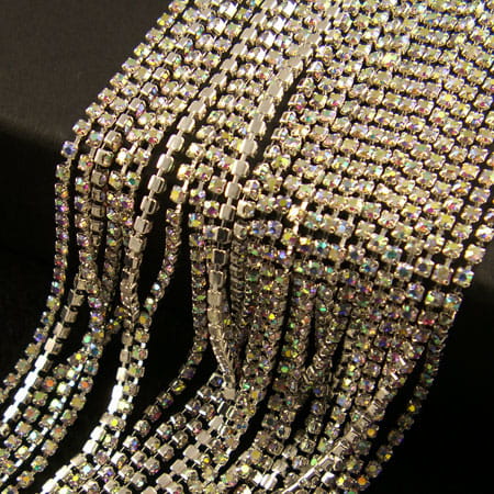 Taśma metalowa srebrna 2mm z cyrkoniami przezroczystymi AB (20cm)