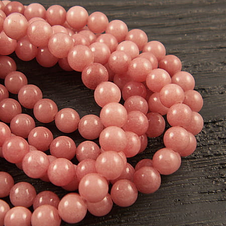 Gładkie, polerowane kulki w intensywnym, pastelowo-różowym kolorze. Kamień ten cechuje się jednolitą barwą i przyjemną, woskową fakturą. Różowy kolor symbolizuje miłość, szczęście i harmonię, a dzięki swojemu czystemu odcieniowi jest idealny do tworzenia biżuterii o kobiecej i romantycznej estetyce. Rozmiar 6mm to uniwersalny wybór do bransoletek i naszyjników.