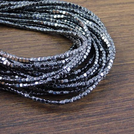 Koraliki z Hematytu – Kostki Zaokrąglone Grafitowe 2x2mm