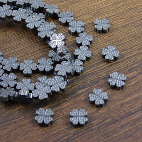 Hematyt koniczynka 8x2.6 mm – grafitowe koraliki z intencją na szczęście