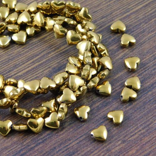 Ciemno złote serduszka z hematytu – metaliczne koraliki do rękodzieła