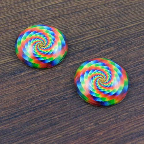 Kaboszon koło ze szkła 25x7mm grafiką multikolor (1szt)