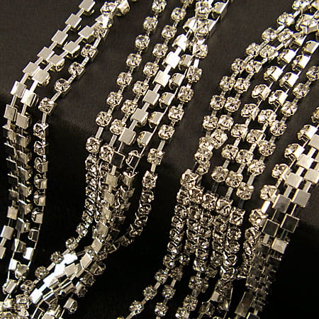 Taśma metalowa srebrna 2mm z cyrkoniami przezroczystymi (20cm)