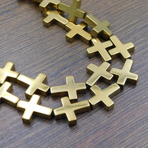 Krzyżyk wykonany z hematyty, może posiadać niewielkie przebarwienia i zarysowania. Polecamy do tworzenia naszyjników i bransoletek.