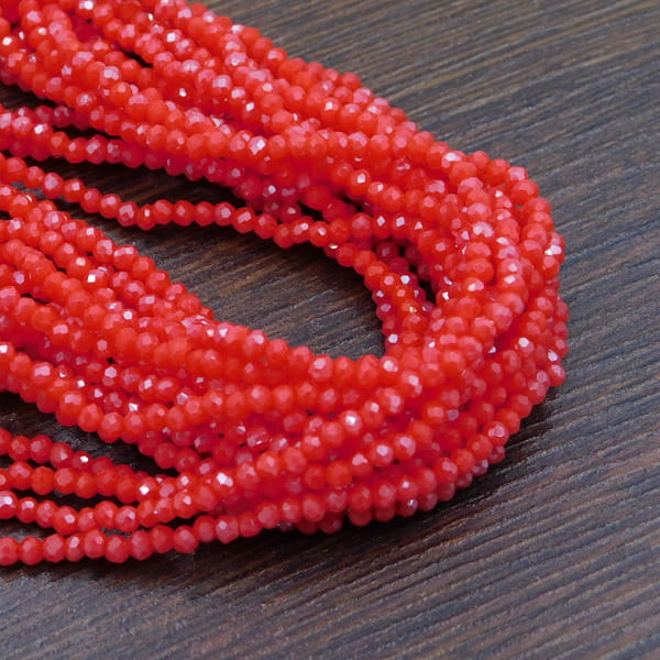 Koraliki Oponki Szklane Fasetowane – 2.5x2mm Czerwień Perłowa