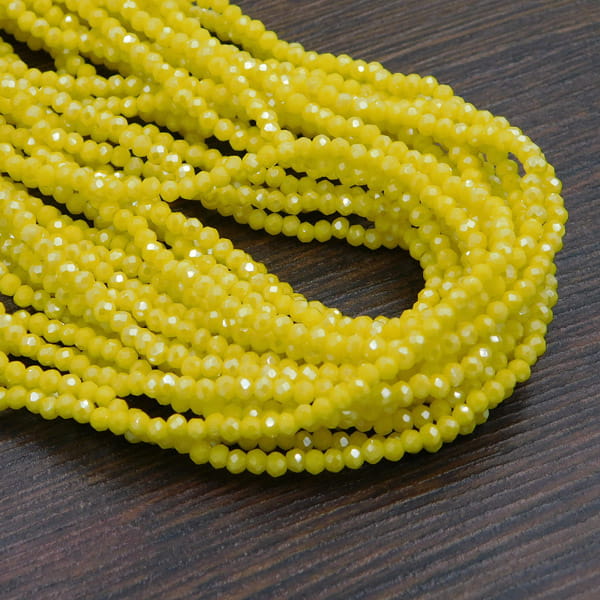 Oponki Fasetowane ze Szkła – 2.5x2mm (Żółty, Nieprzezroczysty, Połysk Perłowy)