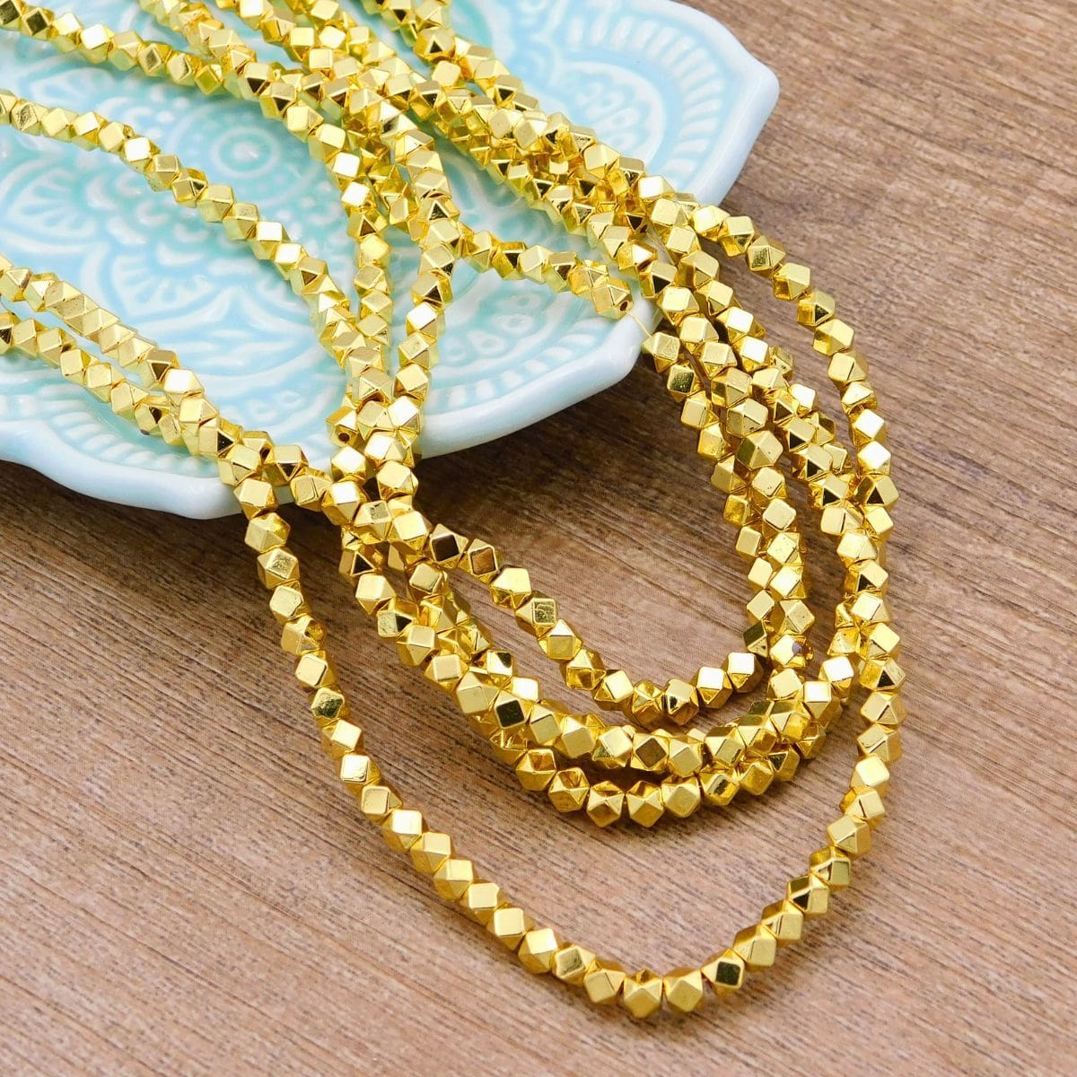 Hematyt Galwanizowany Złoty – Kostka Fasetowana 3x3mm