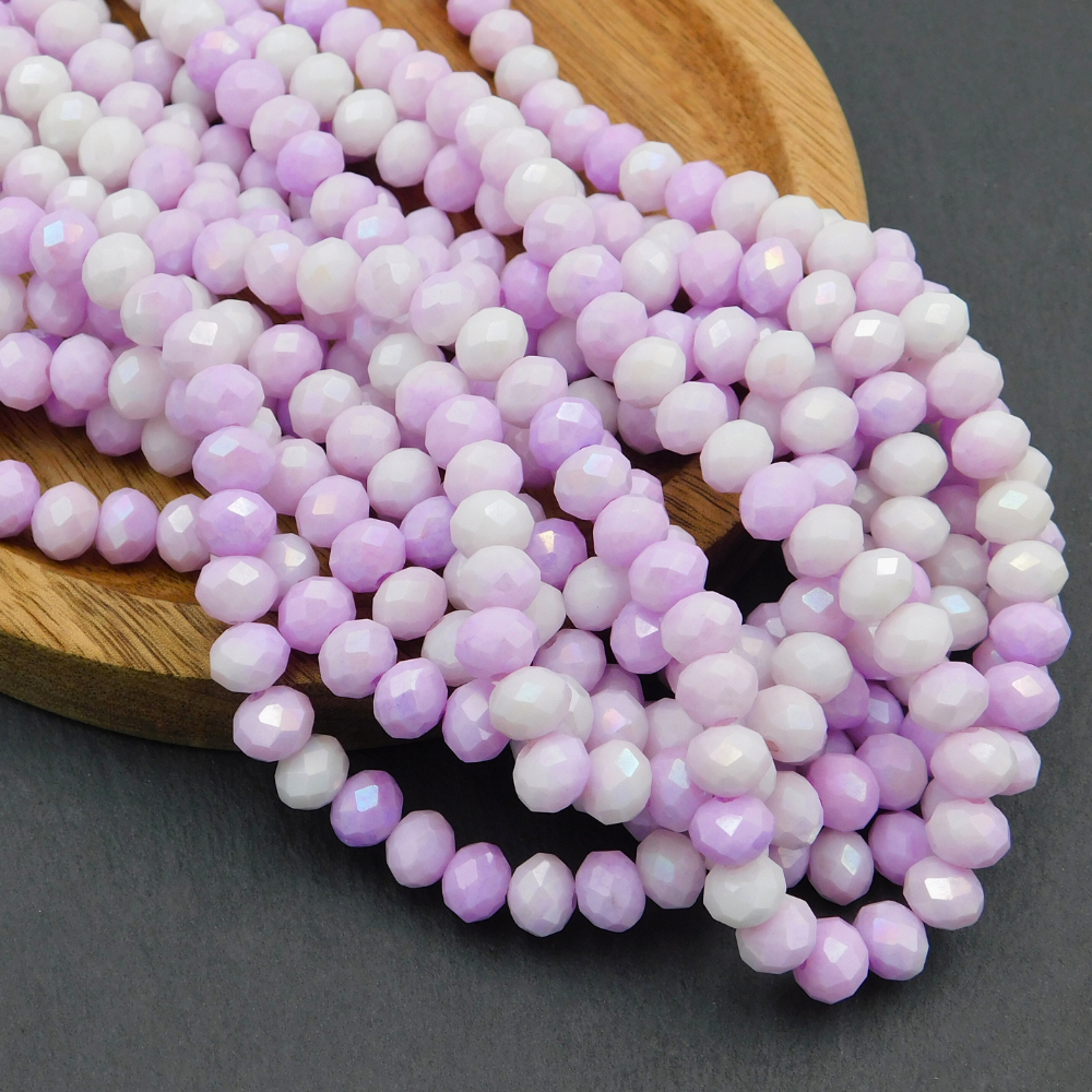 Oponki Fasetowane ze Szkła – 8x6mm (Biało-Fioletowe Opalizujące AB)