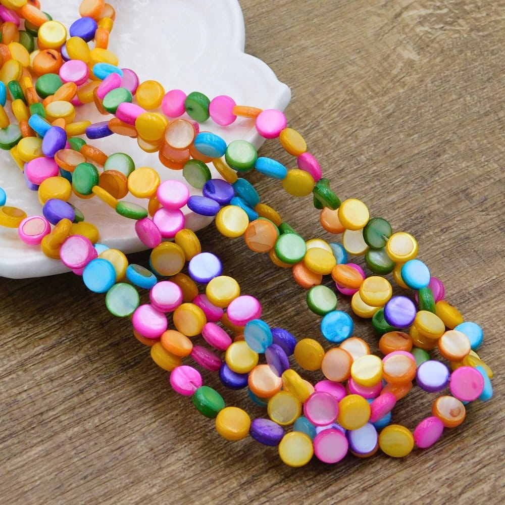 Masa perłowa barwiona pastylki 6-6.5x2-2.5mm kolorowe (sznur 60szt.)