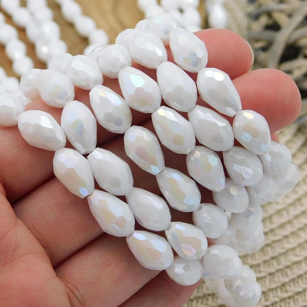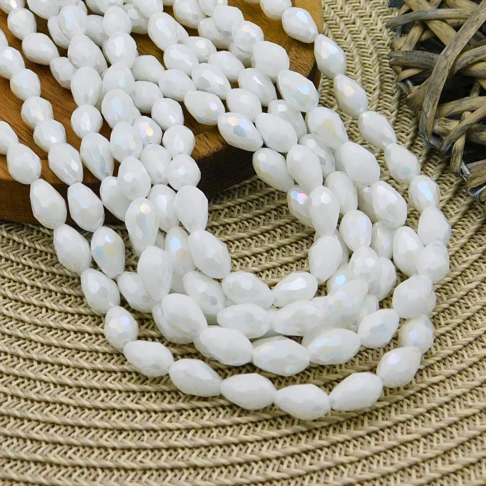 Mroźny Blask i Perfekcyjny Szlif – Szklane Łezki Fasetowane Białe Śnieżne AB 11x7.5 mm