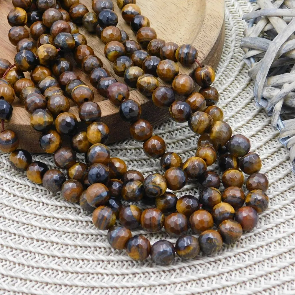 Złocisty Blask i Precyzyjny Szlif – Tygrysie Oko Kulki Fasetowane 8 mm